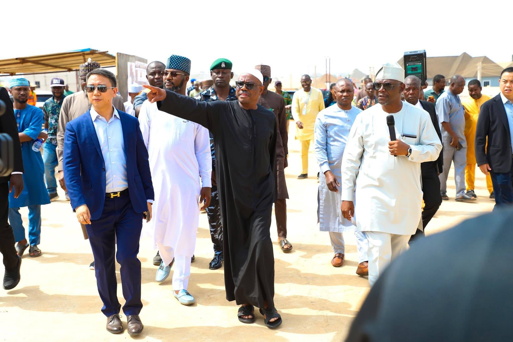 FCT Minister, Nyesom Wike, inspecting the ongoing construction of Interchange Bridge and Road linking Maitama, Gishiri and Jahi with Gwarinpa today.
